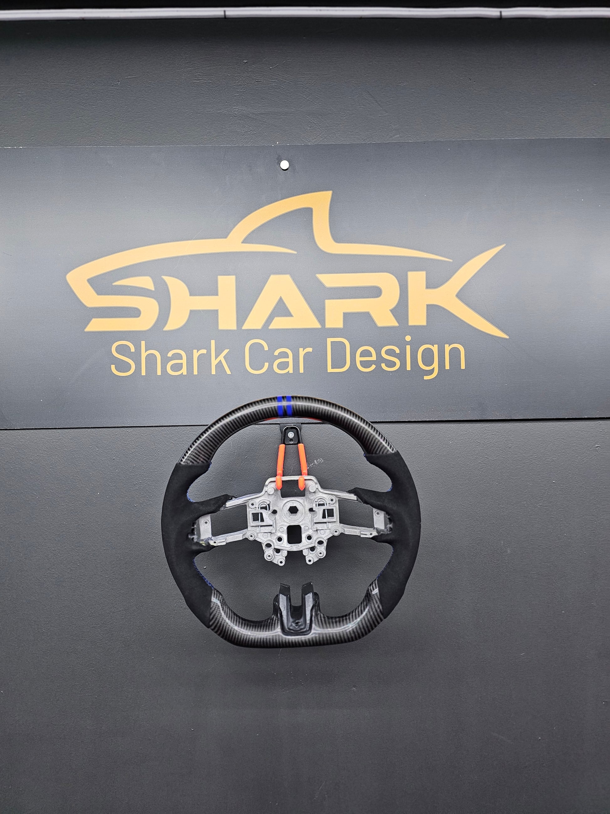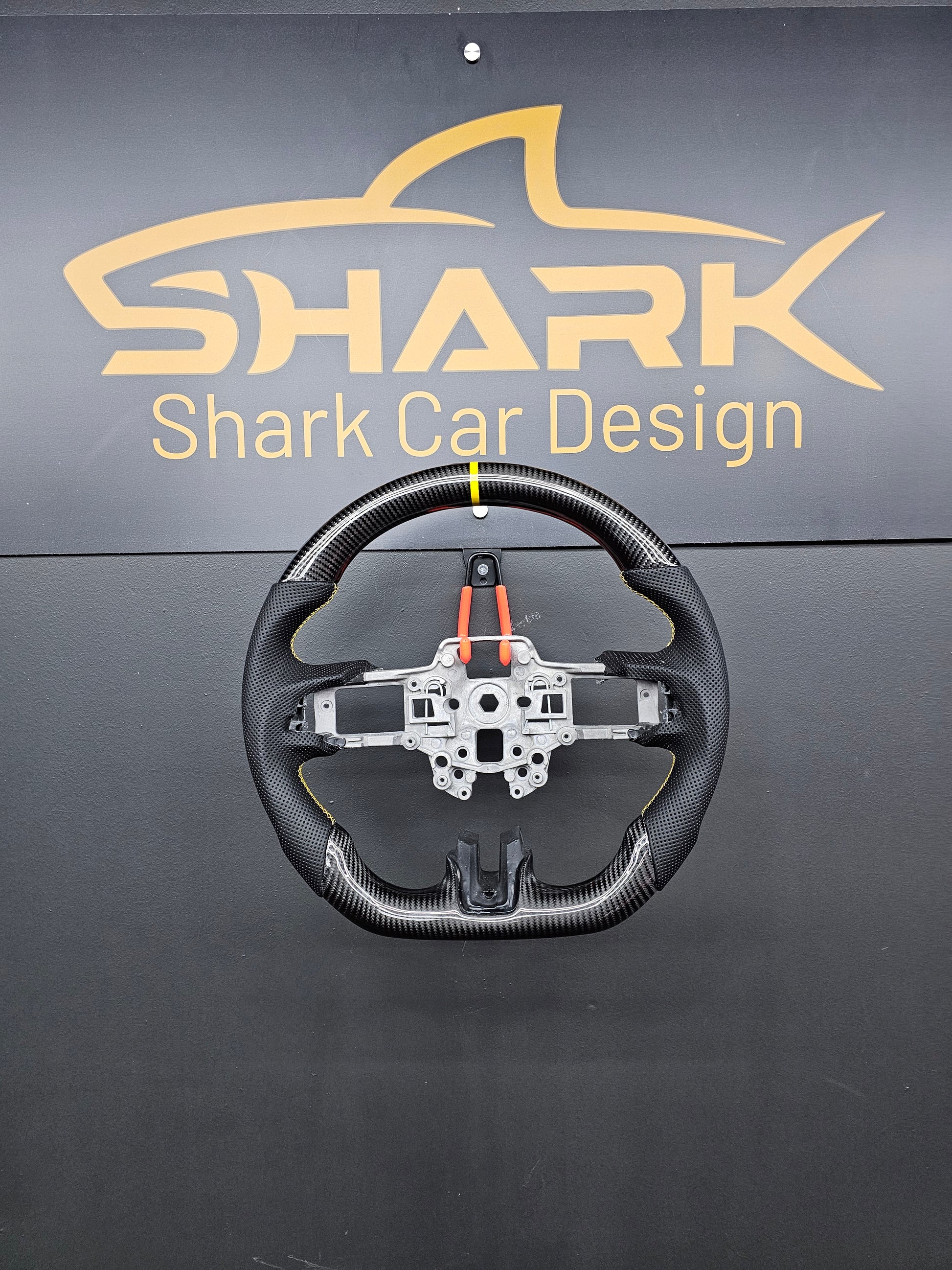 Real premium carbon fibre steering wheel with a choice of 5 different colours and 2 different types of leather.
