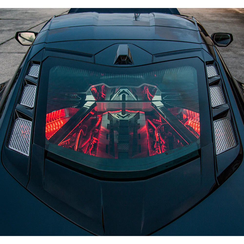 Take a look at these easy-to-install Perforated Stainless Steel 6-piece Rear Hood Vent Inserts. The outstanding quality and workmanship worthy of your C8. What a great way to create a custom style and grab the spotlight. Our Corvette accessories are laser-cut for a precision fit and handcrafted in the USA.
