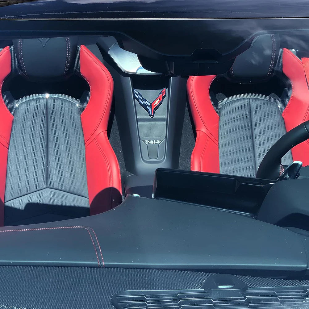 Get ready to add a dash of personality to your ride with the C8 Corvette Crossed Flag Waterfall Emblem! It's a perfect fit for your phone charging bay, but where you put it is entirely up to you. And with 3M double-sided automotive bonding tape, the possibilities are endless. This emblem boasts PhotoSTEEL technology, turning a high-end digital photo of the C8 black emblem onto 14-gauge flat steel. It's 4.5" x 4.5" and comes with 3M automotive grade double sided bonding tape on the back, so you can stick it just about anywhere you want. Forget flimsy vinyl overlays - this is a tough Corvette piece of art that can handle the great outdoors just as well as the inside of your car. And we're not the only ones impressed - even GM has given this item official licensed product status. Just a heads up - we don't endorse installing this on the outside of your vehicle, since