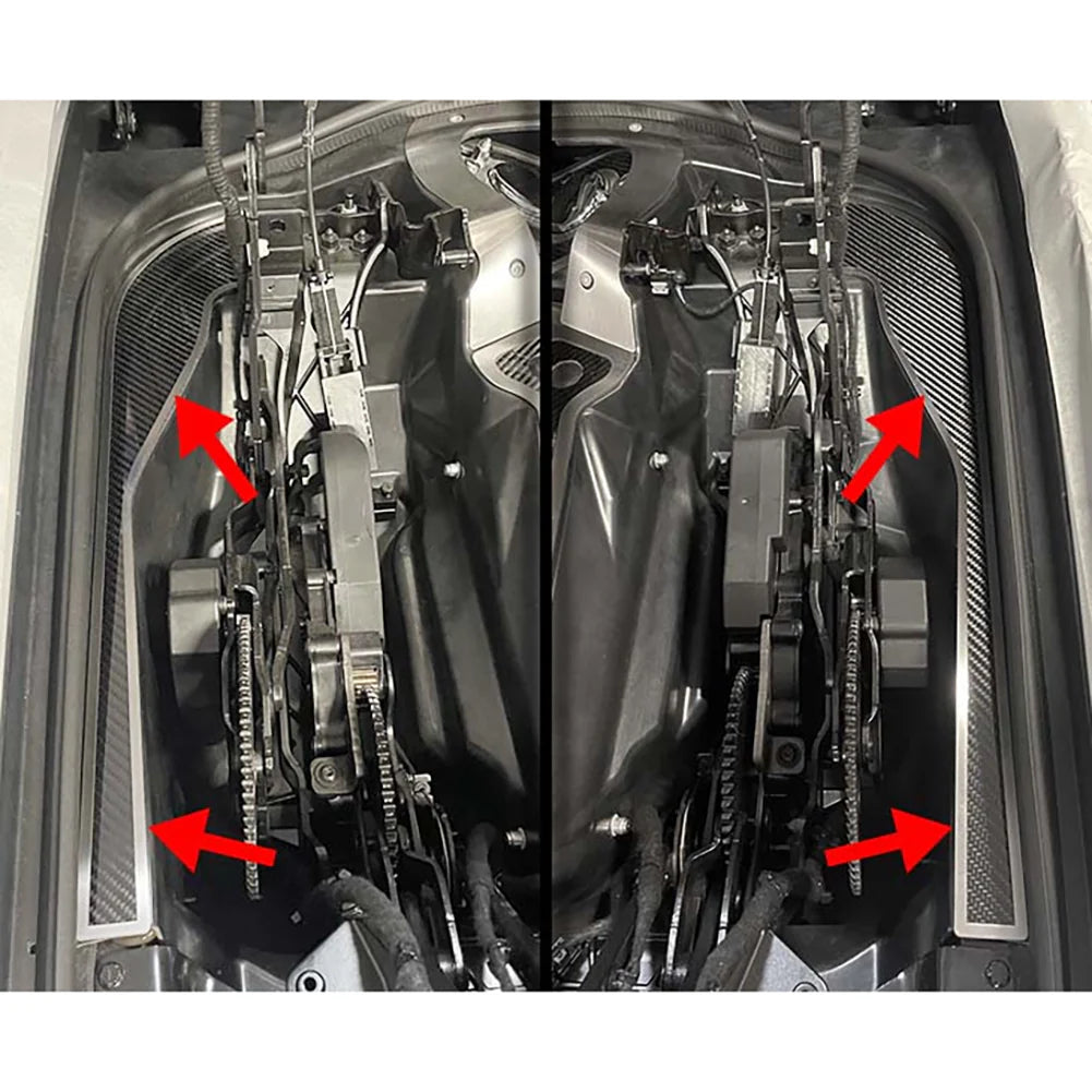 Introducing the American Car Crafts HTC C8 Corvette Hinge Dress-up Plates Carbon Fiber with Brushed Trim – a striking fusion of sleek design and premium craftsmanship. Crafted with meticulous attention to detail, this trunk panel is a masterpiece in polished stainless steel, accentuated by a brushed frame. The polished stainless steel surface not only exudes a mirror-like shine, the brushed frame adds a touch of sophistication, creating a visual contrast that captures attention. It's not just an accessory; it's a work of art that complements the spirit of the C8 Corvette. Installation is a breeze, thanks to American Car Crafts' commitment to user-friendly design.