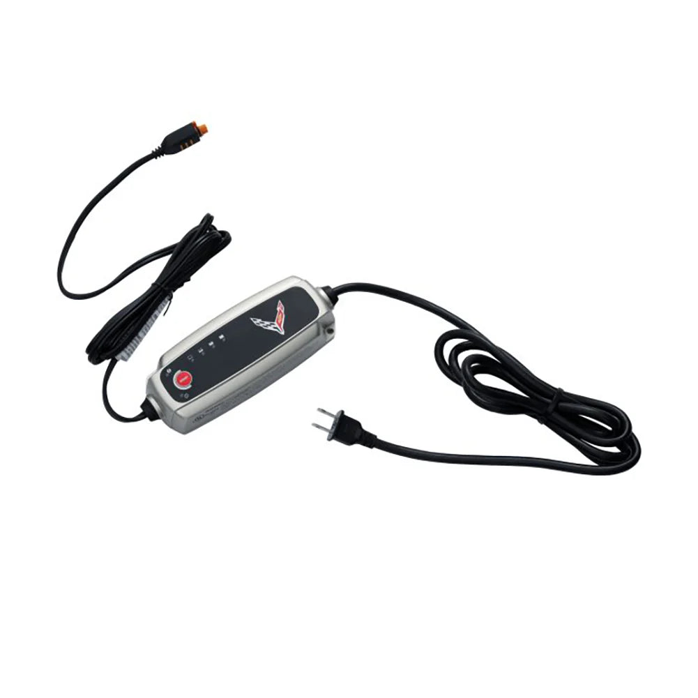 The C8 Corvette battery tender by GM has the C8 logo is easy to use and looks great. This GM C8 Corvette battery charger will ensure that your C8's battery always has an optimal charge. The famous C8 crossed-flags logo on the tender and its carrying case will show your loyalty to this ultimate driving machine.